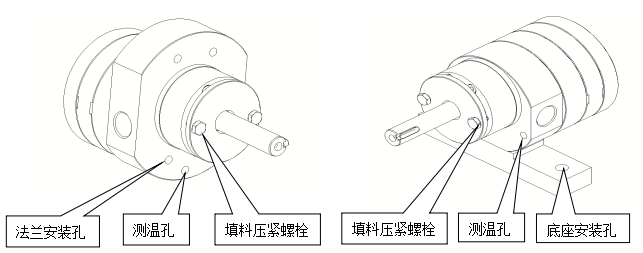 提供兩種泵頭的安裝形式,無(wú)論是法蘭安裝形式還是底座安裝形式,都設(shè)計(jì)有測(cè)溫孔,保證客戶對(duì)物料溫度的實(shí)時(shí)掌控。對(duì)稱布置的填料壓緊螺栓,方便客戶在不拆機(jī)的情況下壓緊填料。