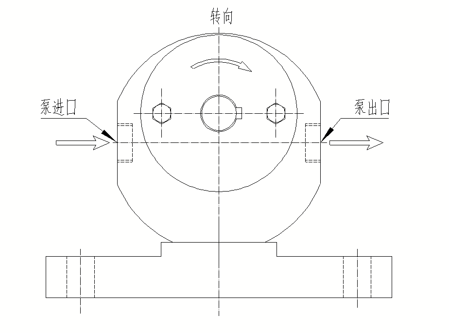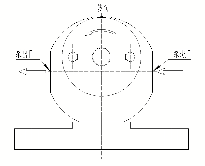 3)、泵的轉(zhuǎn)向及進(jìn)出料口的布置